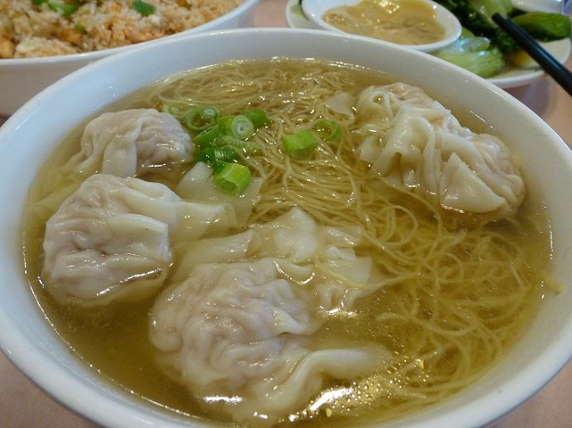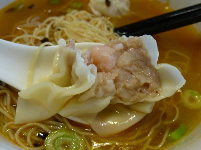 9月份的多伦多已经蛮冷了,所以迫切地想要热辣辣汤汤水水的食物。点了一碗云吞面,好大一碗哦,两个人分都觉得太多了。而且价格很实惠,才五块两毛五。唯一想吐糟的就是这面缠得好紧,我们在那里分了半天没办法把搅和成一团的面分开,后来服务生看不过去了给我们拿了把剪刀过来