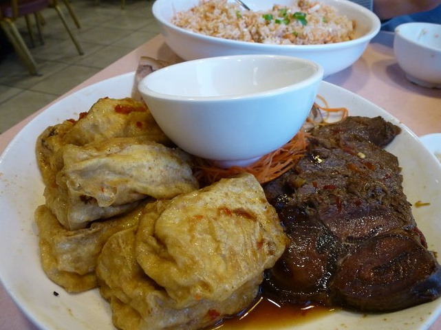 潮州馆子必点的卤水拼盘,也很便宜,9块钱一大盆,味道很好的。我们当然没吃完,打包带了一大半回去。