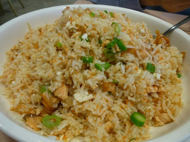 三文鱼炒饭,餐厅的推荐菜。好大好大好大一盆!饭香得不得了,三文鱼一点不腥气。因为加了鱼籽,口感特别好。看看这小脸盆大小的一份炒饭,13块99的价格很平啦。这个我们也是打包带了一大半回去。题外话,后来某人夸下海口要自己学着炒,于是我们到超市买了一盒鱼籽(还蛮贵的),回到渥村,怎么找也找不到了,不知道被我们遗失在哪里了。。。