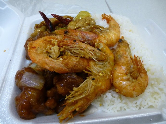 不过盒饭真的就味道麻麻了。三个菜,炸大虾,咕噜肉,还有宫保鸡丁,没一个好吃的 说真的,还比不上渥村的炸药店TNT呢。。。
