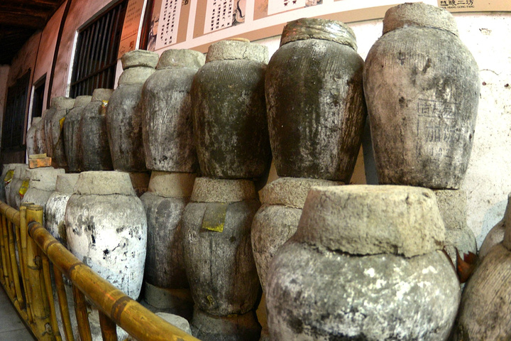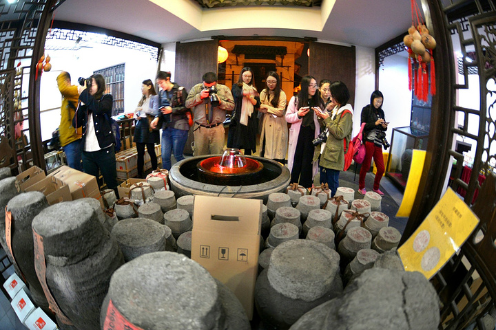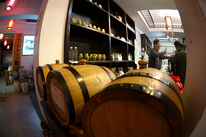 走进坊内,满眼都是这些尘封的酒坛,这里前店后厂,集酿酒、推广、销售、参观于一体。