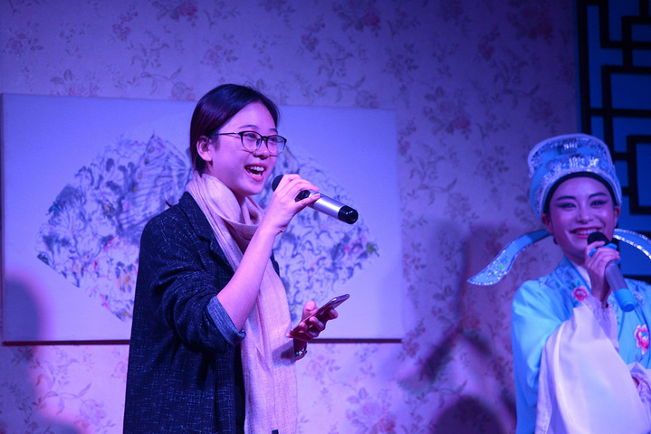 演员盛情邀请下,大咖们纷纷上台表演。有人起哄:“外省的也来一个”,身为北方人我可不会这吴侬细语,只能“树上的鸟儿成双对”,我们安徽是黄梅戏的故乡。