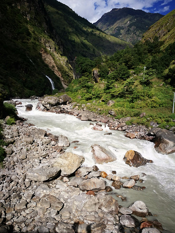 这时候已经是下降到了Marsyangdi河边,然后行进在山石之间