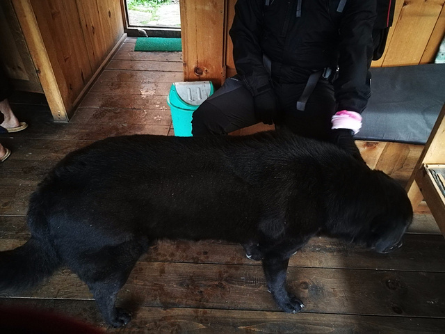 不过在太阳出来后感觉体力恢复了不少,吃过早饭后就准备出发了,出发前看到店里养的大黑狗,真的好想骑着它去爬山啊-0-
