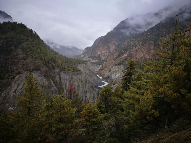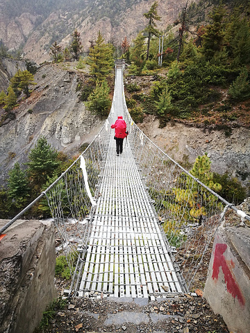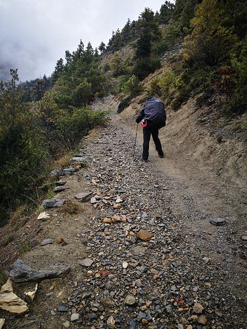 从Upper Pisang开始去到Manang有两条路,一条是走大路,只要3个多小时就能到了,一条是走徒步道,会需要多走3个多小时,说实话,身体感觉比较累,真的是想走大路的,但是我们跟着村口的路走,没有看到另外的岔路,直接就走上徒步道了。。。