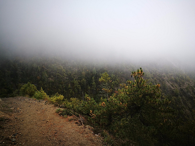 这一段不知道怎么用文字去描述,永远没有尽头的爬升,从云层下,走到了云层里,最后甚至感觉已经走到了云层之上,而且直至3800多海拔。还好我们节奏控制的非常非常好,每一步都走的很慢(3、4秒一步),所以从始至终几乎没有停顿的进行了40分钟以上的爬坡,后面没有一个人追上哦~所以说把控住自己的节奏非常重要,不要受别人的影响。
