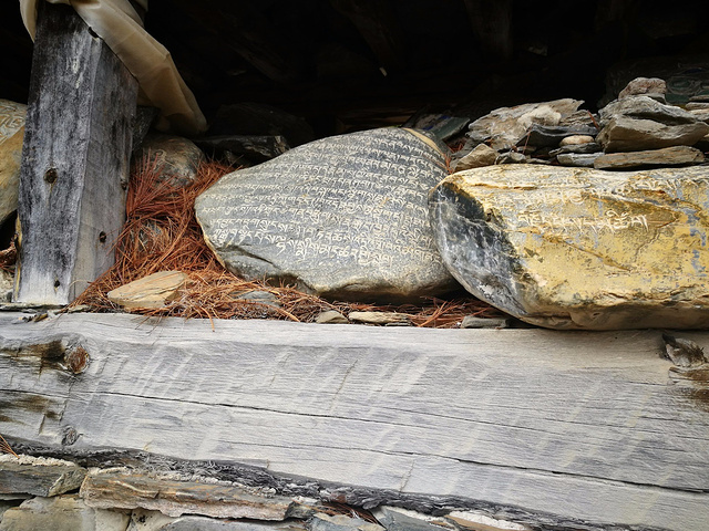 经过石头墙的时候,发现里面乱堆的任何一块石头上都刻满了尼泊尔文
