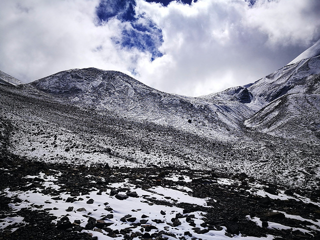 走一阵后就离开了雪地,满眼满眼的都是碎石渣子。
