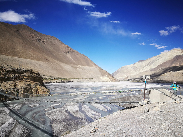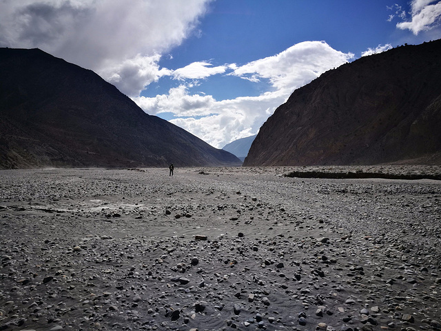 再走一段,画风又是一转,眼前是大片裸露的石头河床和如老年人手背上的褶皱般交错的河流与分支