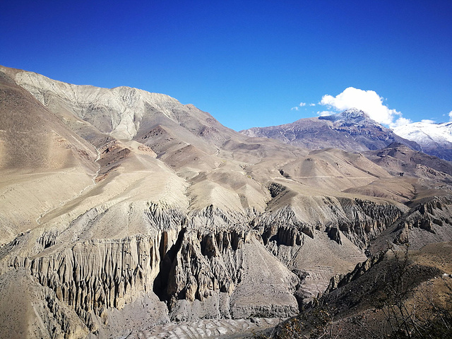 继续往下走不一会儿,画风一转,突然感觉来到了西部片中,远处是大大的土林,一路上风尘仆仆,山也变成了碎石子山。