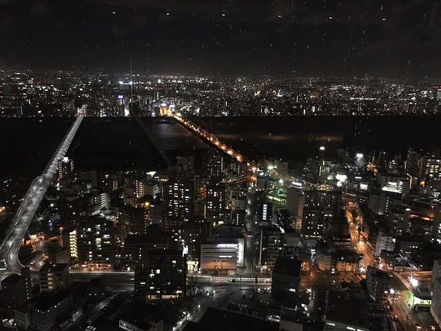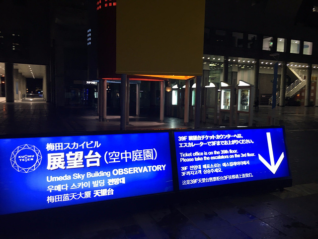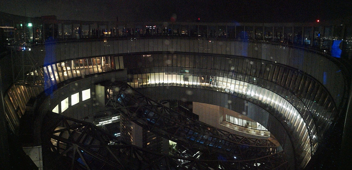 再去展望台的路上赶上了大暴雨,于是赶紧躲进商场避雨,也耽误了行程时间,但值得一提的是大阪的轨道交通换乘十分方便,基本不用出地面,地下就四通八达。地下走廊连接各个商场和换乘站。不过蓝天大厦离JR大阪站还有两公里步行路程,但是相信我,夜景绝对很赞,就是风大冷了点。