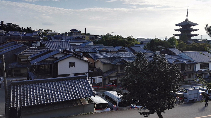 从高台寺山门下去,往左手方向走,不远就可以看到右手边写着石塀小路的路口。其实就是石板铺的路,不过两边都是纯日式的小院落,有种文艺范儿的道路,好多民宿也在这里。看到不少来拍文艺范儿照片的。