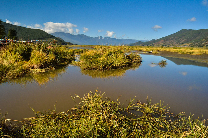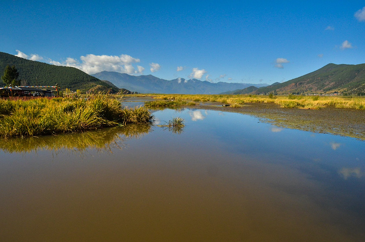 从湖的一端到达另外一端,跨越在湖面上的水草。形成了特有的水草湿地景观现象,尤其是在秋季的时候,水草湖面上的树木都红与黄相互映衬宛如仙境一般,整个景色将西南景致、江南红叶景观以及摩梭人家特有的爱情桥融合在一起。成为泸沽湖上特有的一朵奇葩。