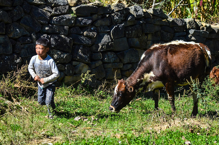 放牛的孩子与牛儿在这里就是一种原始而生态的景色,不是景色却胜似景色,大概就是这泸沽湖走婚桥上的特有的景致了吧?