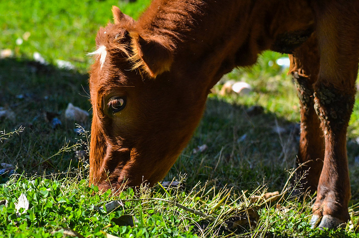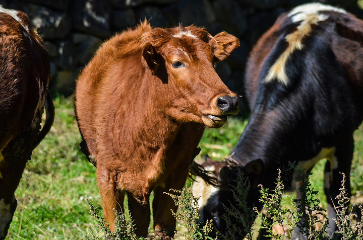 正在吃草的牛儿,很警觉的发现了我拿起长焦镜头对着它拍照。于是很好奇的抬起头看了看我。一股很萌的眼神更人们带来了更多的风景欣赏点了。