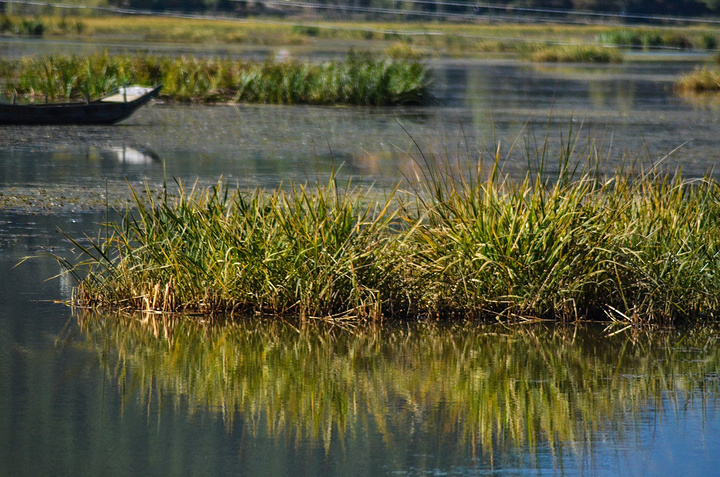 从湖的一端到达另外一端,跨越在湖面上的水草。形成了特有的水草湿地景观现象。