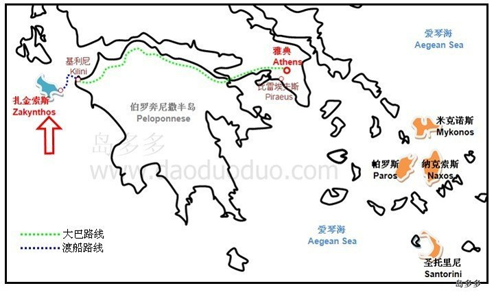 出发前对扎岛做了点攻略,扎金索斯在不同的地方可能写为Zakynthos,Zakinthos,Zacinto,Zante