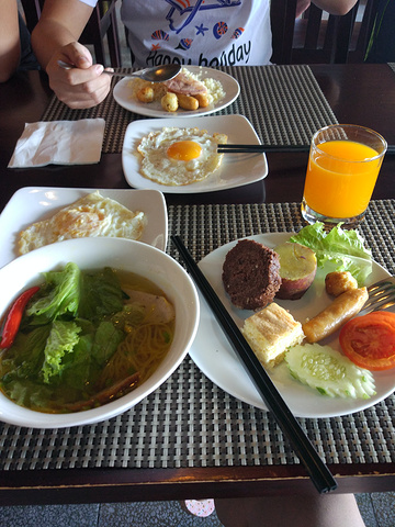 芽庄机场比较小只有一个出口 从机场到住宿的地方不到一个小时 导游会按照之前预定的酒店星级安排房间 当然像哈瓦那 芒果五星酒店在市中心的位置,我们选择的是四星酒店,所以酒店要偏一些,离闹市区半个小时的路程 走路的话 。分别安排入住酒店以后用早餐休息,中午12点集合用午餐。