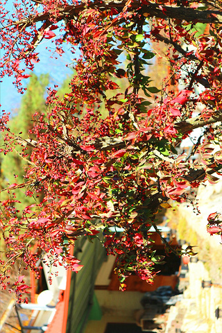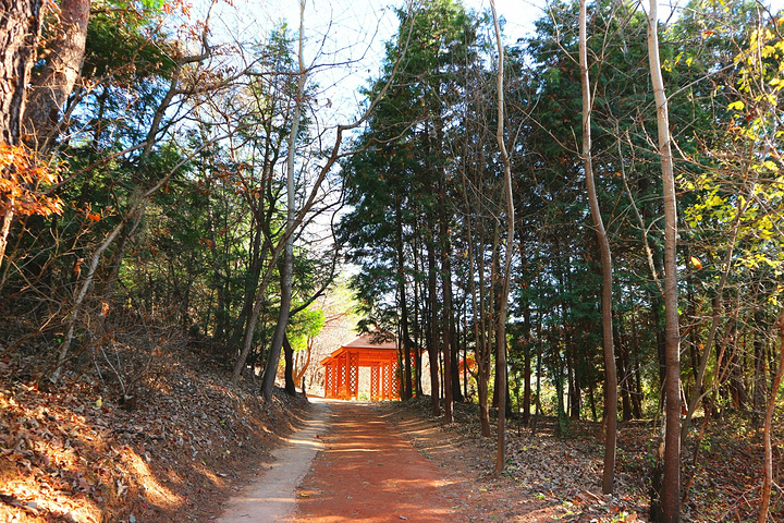 沿着这条路和指示牌就能找到盘龟台了,沿路上的有长满果实的树,有路边半红半绿的枫树,还有木质的栅栏式的小桥,从上面走过还发出咯吱咯吱的响声, 用声音,用眼睛,用心去感受这个秋天
