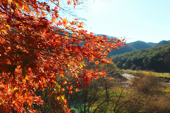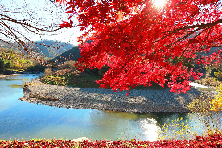 这红彤彤的枫叶和这蓝色的江水相互呼应,美不胜收。
