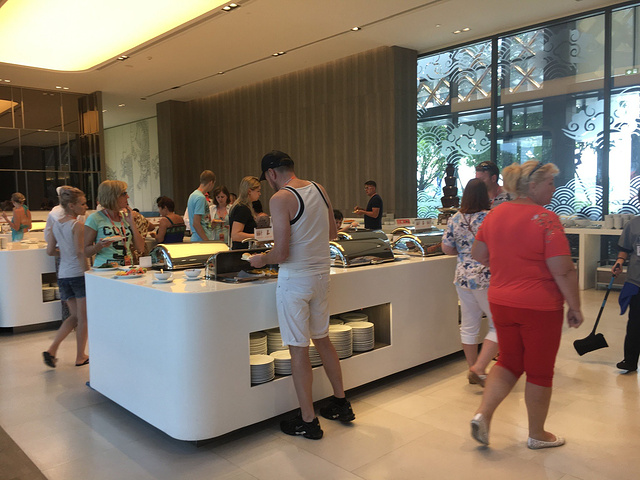 餐厅一分为二,左边区域聚集中国人,右边区域聚集外国人,供应的食材都一样,外国人特别会吃,我们挑选的直接吃,外国人会自己加很多料!
