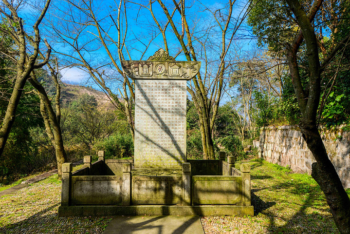 金庭王羲之墓在嵊州城东20多公里的金庭乡瀑布山。金庭是书圣王羲之晚年养生之处,卒葬于金庭乡瀑布山下。据《剡录》载:“王右军墓,在县东孝嘉乡五十里。”今墓为1984年重修,向南,圆形,条石青砌,墓前铺青石平台,中立石碑,碑阳镌刻“晋王右军墓”,上覆以方形石亭,单檐歇山顶,此处有古柏蔽日、瀑布挂潭,青山环抱,碧溪蜿转,秀色可餐。省级文物保护单位。