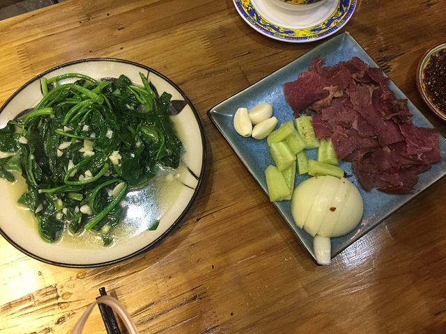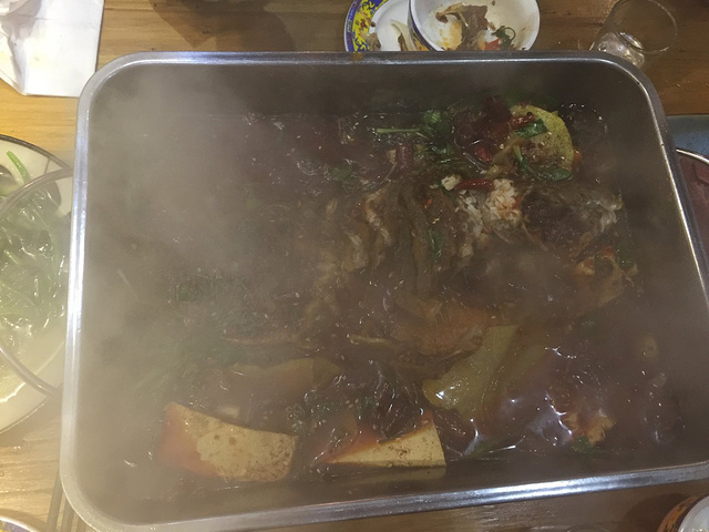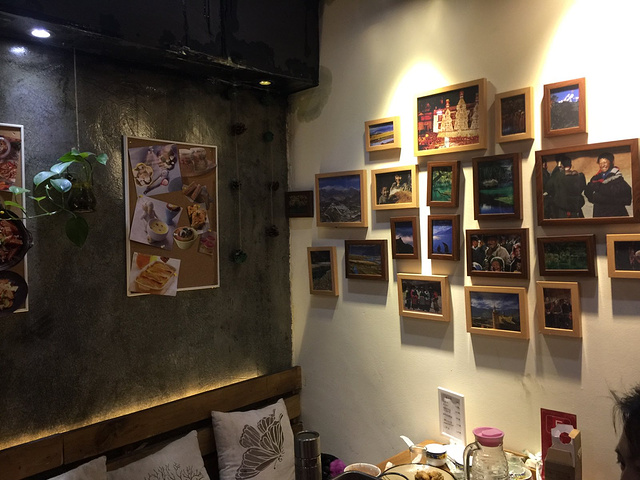 樱桃创意厨房,景区里唯一一家小资情调餐厅,显然不适合我们三人去吃,可惜景区现在是淡季,很多门店都不开了,能选择的地方太少。点了烤鱼,牦牛肉,菠菜,椒盐香菇,价钱不便宜,好在味道不赖。重点推荐烤鱼,超级好吃。