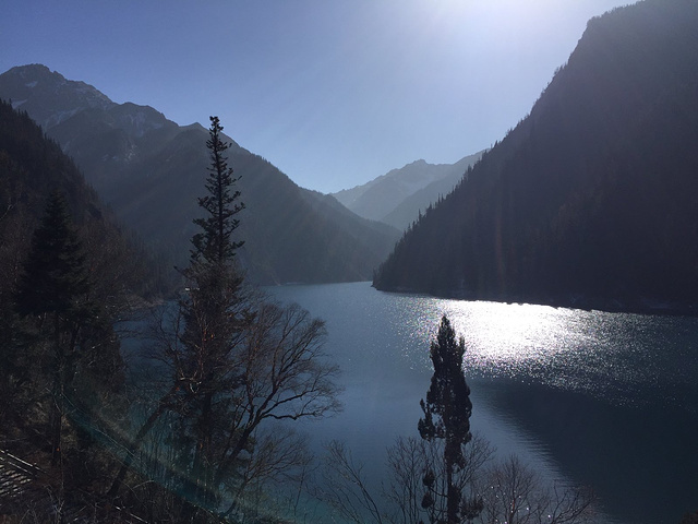 看完右边的沟,用完午餐,我们向左边的沟进发。到达长海,九寨沟最大的海子。