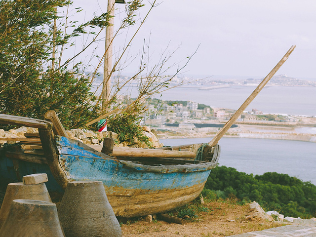 破旧不堪的船 作为装饰品处着