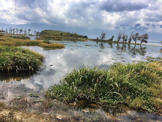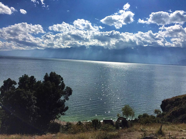 第四天,又睡到了自然醒,据说大理要七点半才天亮,于是……我们睡到了十点半,收拾收拾出发,又接近中午。今天我们主要是包车环洱海,然后到双廊住一晚,跟另外两位美眉一起,4个人包车一共240元,从古城出发,环一圈再到双廊
