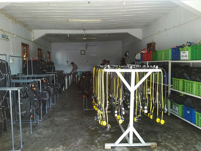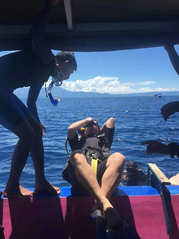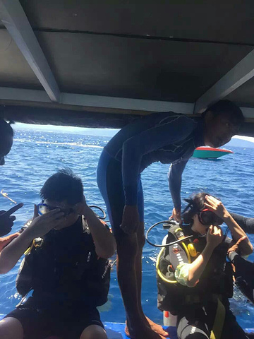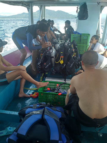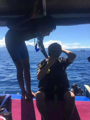 潜水中心学习潜水技巧,一定要仔细听,仔细听。这边国语好的人不多,随船出海的教练虽然是一对一,但是语言不通呀,况且在水下全靠专业的手势语言了。