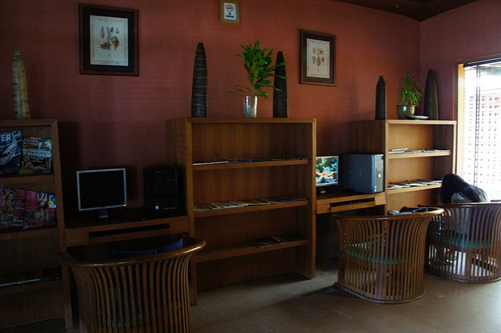 薇莉岛的无边泳池非常漂亮,是岛上水最清透的地方,无边泳池的旁边是水吧,水吧会免费提供一些点心啊,水果啊,总之,服务那是相当的到位的,对于从来没有玩过浮潜的我们来说,这里也是一个练习浮潜的好地方,因为这个泳池毕竟是淡水吗,即使呛水也不至于很难受。另外岛上还有一处网吧+图书馆,有2台电脑可以免费使用,网速一般,有wife可以用,图书种类不多,多数是来这里的游客留下的,所以世界各地的书都有,沙发很舒服,中午下午外面太阳大的时候,可以在这里泡上一会。
