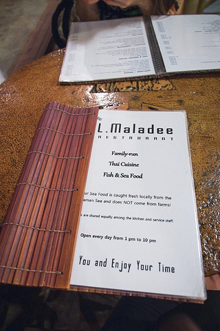 这家传统泰式料理并不在saladan的主路上,甚至还相当的绕路,我也是骑摩托看住手机导航这样的花样作死方式才找到了这里。这里的价格在兰塔算是性价比中的性价比,要求再便宜只能去吃苍蝇路边摊了,食物味道绝对泰正宗,尤其当天special的新鲜鱼,经常客满需要等位。