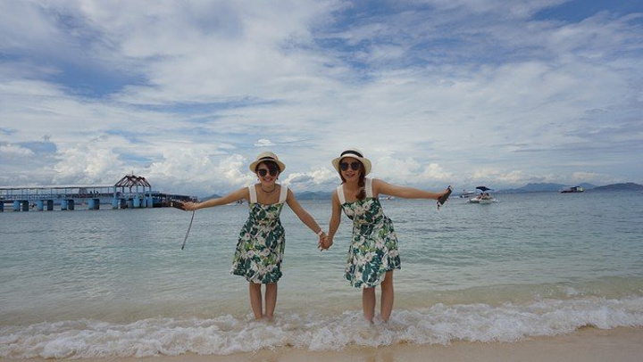 今天去这次旅行的唯一景点蜈支洲岛玩,事实证明带小孩,特别是年龄不大的小孩,一个景点足已,小黄的小孩