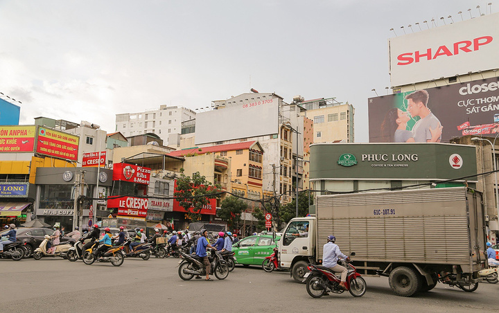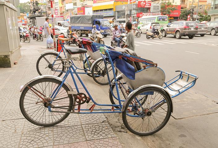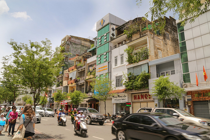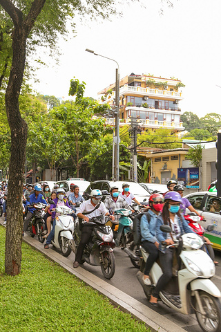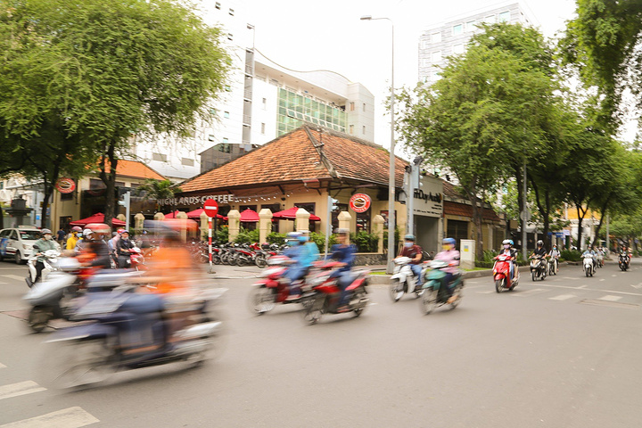 咖啡喝完,正式迈入暴走阶段。胡志明的街道破破旧旧,交通状况也不容乐观。匆忙就嗖的一声穿过你身边的摩托车大军,街上零星驶过的几乎清一色的日韩系汽车,著名的“客先死”超典型游客最爱的三轮车,破破烂烂的窄楼,还有法式风情浓郁的五颜六色的洋房,走哪儿都有的风格不一的咖啡厅……