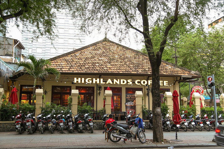 胡志明的街头真的是密布咖啡厅,有的优雅,有的又很简陋,有的则是快餐式的连锁。我和玥开玩笑说,要集齐九张咖啡厅的照片召唤神龙,后来才知道这个目标实在太容易完成了。别说正儿八经的咖啡厅遍地开花,街边随便一家餐厅都可以从店内摆出几张小板凳放在路边,并为你呈上一杯新鲜制作的冰滴漏。