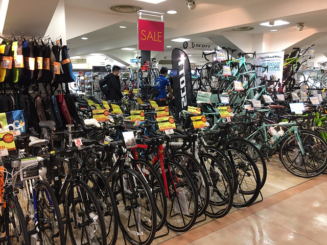 在小田急的商场里,帮老公又找到了一家自行车用品专卖……想哭……又花了我不少银子给他买骑行服……不过好歹他美了……