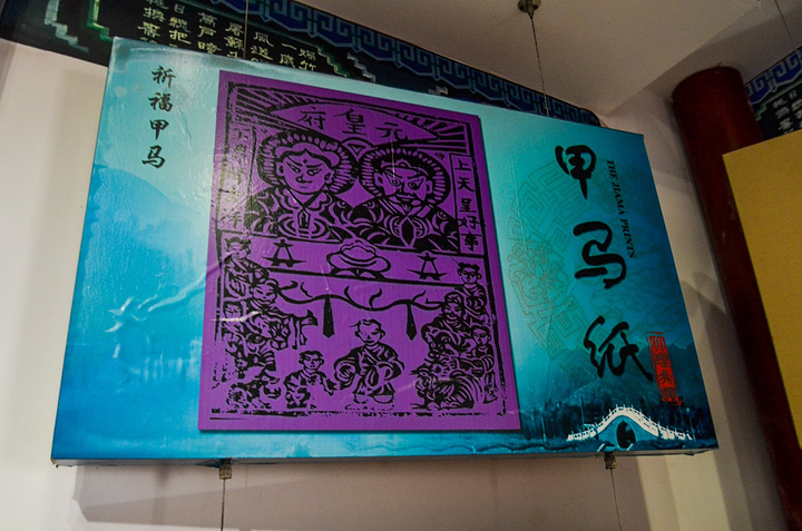剪纸作品线条连续穿插变化,匀称流畅,构图丰满。在技法上不仅采用线线相连的阳纹和线线相断的阴纹手法,还根据不同细节采用不镂空的刀痕线条,很多图案更以几何图形表现,形象生动,整齐美观。白族甲马纸始于白族古代社会。当时,中原汉族地区有一种“甲马”,即“俗于纸上画神佛像,涂以红黄彩色而祭赛之,毕即焚化。”白族先民很快引进了汉族的“甲马”,用这一形式来表现自己的传统文化、民族意识。发展到今天,演变成了地地道道的“白族甲马纸”。无论是在制作和内容上都与中原汉族地区的“甲马”有了严格的区别,是源于斯而不同于斯了。