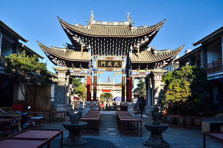纵览全世界不计其数的关帝庙,唯有大理武庙将中原的关帝文化与当地的民族文化融合为一炉。维系世界华人精神寄托的关帝文化与白族本主文化在这里得到同宗传承、绝妙演绎,使之成为世界唯一一座具有两种文化同时出现的武庙。
