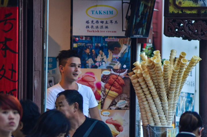 在返回大理古城南门的时候发现洋人街还有土耳其冰淇淋店铺呢,店里面的土耳其帅哥萌萌的看着来来往往的过客穿梭与古城的东西南北。