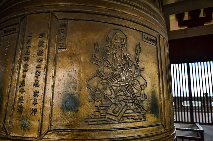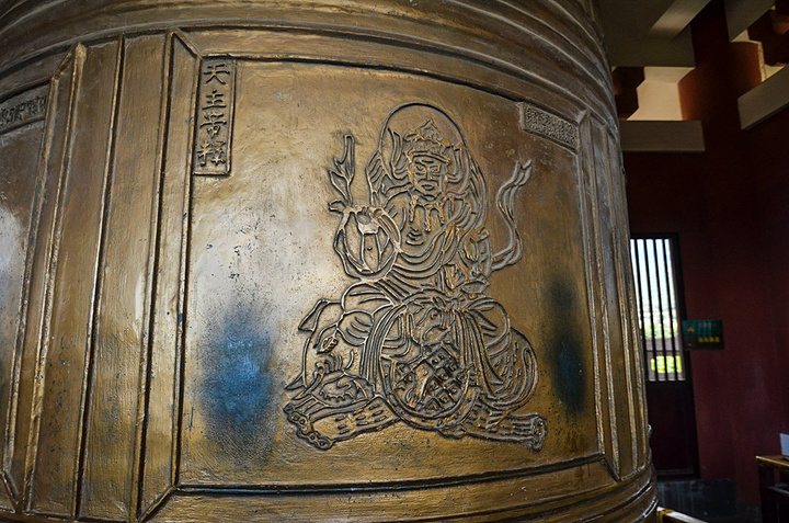 这些大钟上面都是雕刻的是四大天王护法神的法相。