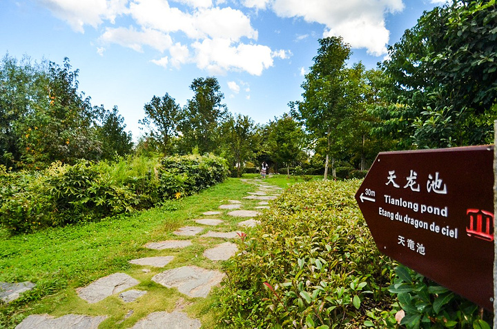 其中山门前的龙池是以金庸的小说《天龙八部》对“天龙寺”的描写为素材,以在原址挖出的一块高5米、宽4.5米的大青石的自然形状为基础,雕刻成了一个高4.5米、宽4.2米的巨型龙头。龙头下建成宽7米、半径3.7米、深0.6米的水池 。