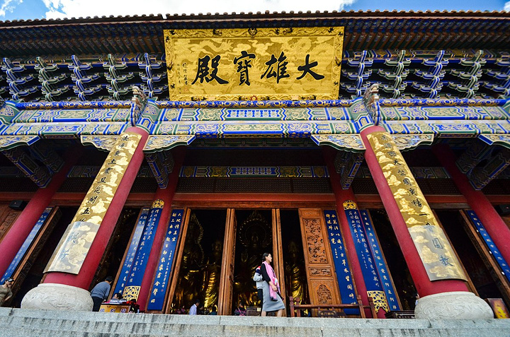 大雄宝殿为仿北京故宫太和殿,清代重檐九开间,有三层台基,殿面阔51.7米,高26米。《张胜温画卷》被雕刻成高1.8米,长117米的木雕长卷,安装于大雄宝殿内墙四壁的高2.03米,长119米的巨型佛龛内。