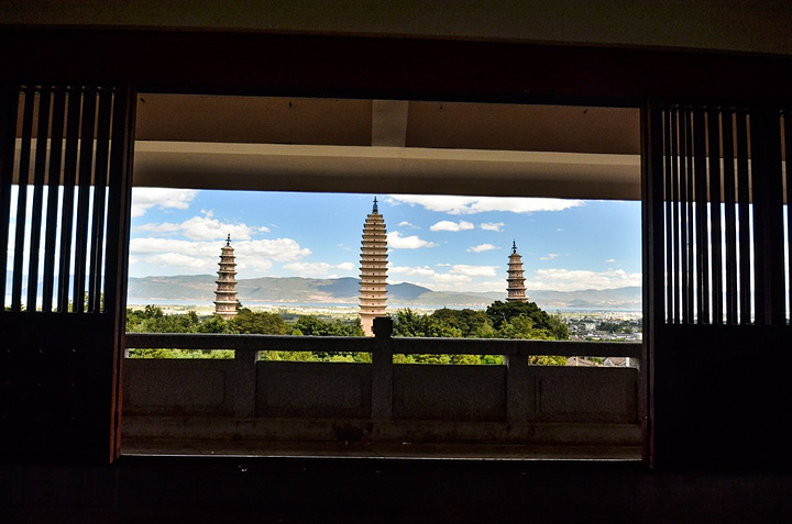 登上之后崇圣寺三塔在框架就像一幅画那样的秀美动人。