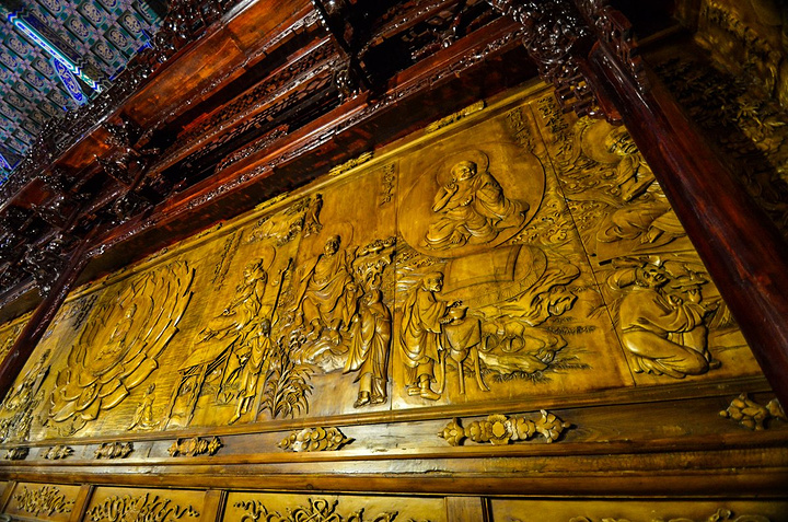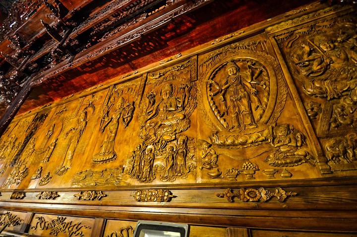 这些都是大雄宝殿将佛祖的生平的神奇本领篆刻成木雕画来供大家瞻仰、学习。