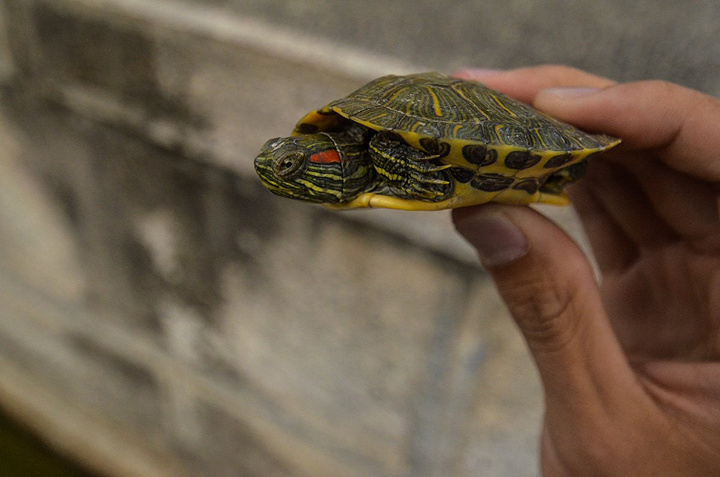 轻轻的拿起小乌龟,居然不害怕我。大概是它们觉得我不会伤害它们,所以就不会害怕吧?