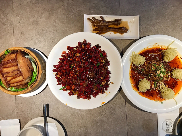 解放碑附近有一家炒菜馆叫顺风123.coco,味道很不错,鸡丝凉面,辣子鸡丁,粉蒸肉,都很好吃。重庆给我的印象就是,炒菜随便点都不会错,每一家都好吃。来自游记【Jan&Yun ❤ ChongQing】从你的全世界路过