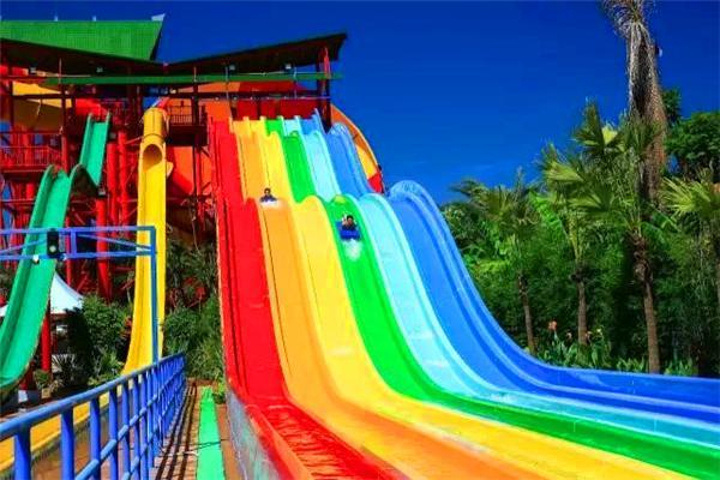 彩虹滑道、穿越时空、鸳鸯滑道等超级水上游乐设备全新奉上、可以一天玩到晚。