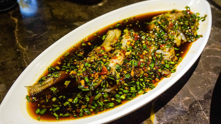 本来想点一个秘制凉拌鲫鱼,结果鲫鱼卖完了只有龙鱼,开始还在想龙鱼到底是什么,结果一看发现就是我非常喜欢的丝丁鱼啊。肉质依然十分的果冻感和嫩滑,不过这个嫩滑感让喜欢的人很喜欢,厌恶的人则弃之千里。还好杨同学能接受这种口感。