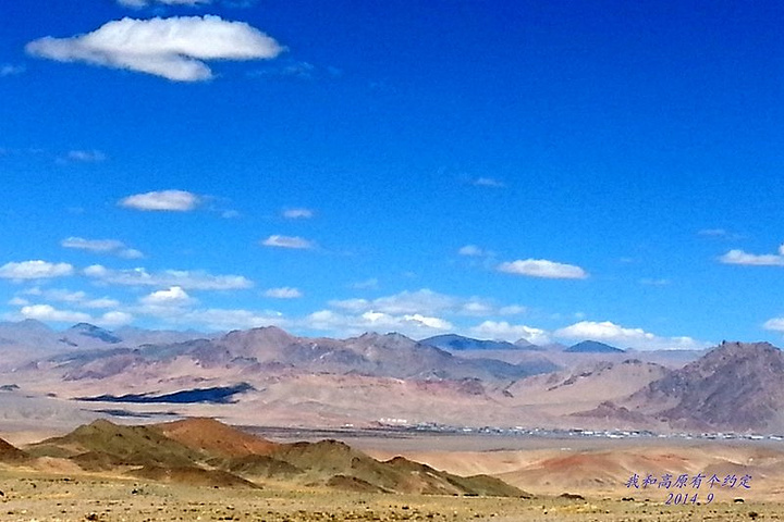 汽车行进的方向基本朝着正北,行进在阿里的苍茫大地,这是一大片无人区,平均海拔在4500米以上,一条黑油油的柏油路略微上坡几乎笔直地伸向远方,没有尽头,只有绵绵的山脉勾勒出了这个被称为世界第三极的轮廓。大概是与土林的景色反差太,只觉得车窗外随处是景,随处也就是荒凉,有些审美疲劳,阿里一路的风景都是这样,有时几个小时的颠簸,就围着一座雪山、一个湖泊转,看多了也会觉得无聊。